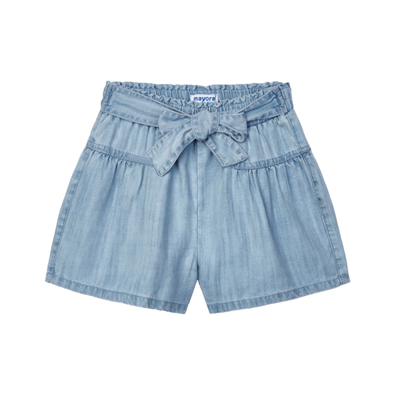 Sehr schöne Sommershorts für Mädchen aus dem Hause Mayoral. Elastischer Taillenbund mit dekorativer Schleife zur besseren Anpassung.