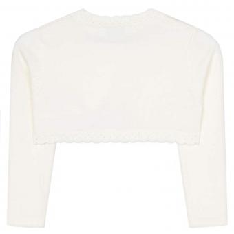 Schöner festlicher Bolero für Mädchen von der Firma Mayoral. Optisch überzeugt die Strickjacke mit Rüschen und einer klassischen Optik.