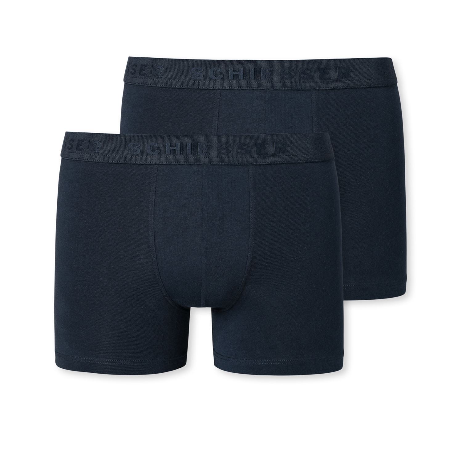 Angenehm weiche Boxershorts für Jungen im Doppelpack von Schiesser. Das Set besteht aus zwei dunkelblauen Unterhosen aus weicher, elastischer Baumwolle. Für einen perfekten Sitz sorgt der elastische Taillenbund mit Schiesser-Schriftzug.