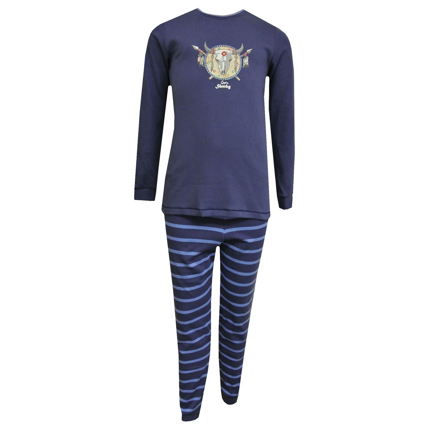 Der lange blaue Jungen Schlafanzug aus der Schiesser Serie "Capt´n Sharky" für junge Seeräuber.