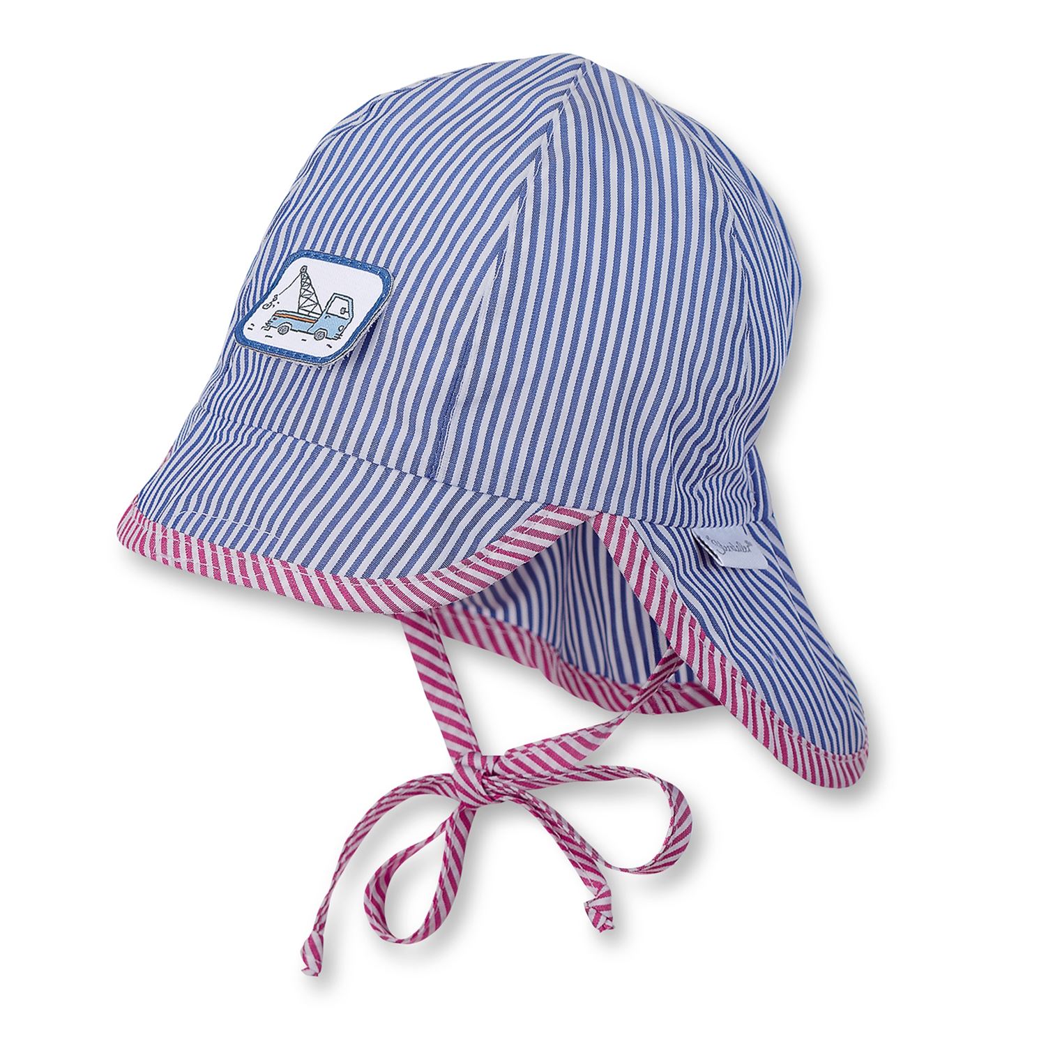 Schicke Schirmmütze mit Nackenschutz für Jungen von der Firma Sterntaler. Oberstoff und Baumwolle sind aus 100 % Baumwolle gefertigt, wodurch ein sehr angenehmer Tragekomfort entsteht. Bei der Mütze zum Binden ist am Hinterkopf ein Gummizug verarbeitet, sodass die Mütze perfekt am Kopf sitzt. Der Ohrenschutz schützt bei Wind. Auf der Vorderseite ist ein Klettverschluss mit Lkw-Motiv angebracht, womit der Schirm hoch- und runtergeklappt werden kann. Dank des leichten Stoffs und UV-Schutz 50+ ideal für die Sommer- und Urlaubszeit.Allgemeine Hinweise:- Übergangs- und Sommermütze- Schirmmütze- mit Sonnenschutz- mit Nackenschutz- mit Ohrenschutz- UV Schutz 50+- 100 % BaumwolleGrößenempfehlung von Sterntaler:Gr. 33 - 0-1 MonatGr. 35 - 1-2 MonateGr. 37 - 2-3 MonateGr. 39 - 3-4 MonateGr. 41 - 4-5 MonateGr. 43 - 5-6 MonateGr. 45 - 6-9 MonateGr. 47 - 6-12 MonateGr. 49 - 12-18 MonateGr. 51 - 18-24 MonateGr. 53 - 2-4 JahreGr. 55 - 4-6 JahreGr. 57 - ab 7 Jahren