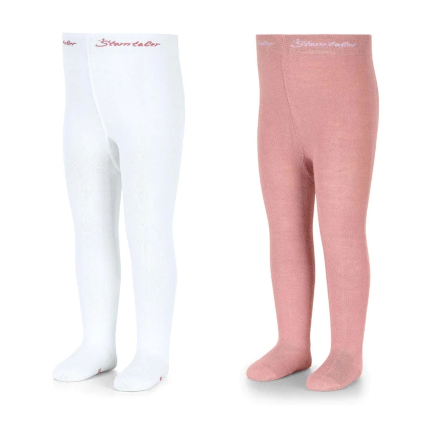 Die einfarbige Strumpfhose mit Viskose-Anteil (aus Baumbuszellstoff) gibt es im vorteilhaften Doppelpack und sie sind superweich und bieten höchsten Tragekomfort. Das Material ist temperaturregulierend, hält im Winter warm und wirkt im Sommer kühlend. Die Strumpfhose nimmt Feuchtigkeit leicht auf und transportiert sie von Beinen und Füßen weg. Also auch ideal für aktive Kinder, die leicht ins Schwitzen kommen. Der Komfortbund der Baby Strumpfhose schmiegt sich angenehm an und schneidet nicht Die formgebenden Nähte im Fersen-, Zehen- und Schrittbereich sind sehr flach und schränken dein Kind beim Laufen, Spielen und Toben nicht ein. Die Strumpfhosen lassen sich sowohl einzeln als auch in Kombination mit einer Hose tragen. Sie eignen sich somit für jede Jahreszeit und sollte in keinem Kleiderschrank fehlen. Die Strumpfhose kann bei 40°C gewaschen werden und ist in den Größen 50/56 bis 122/128 erhältlich.