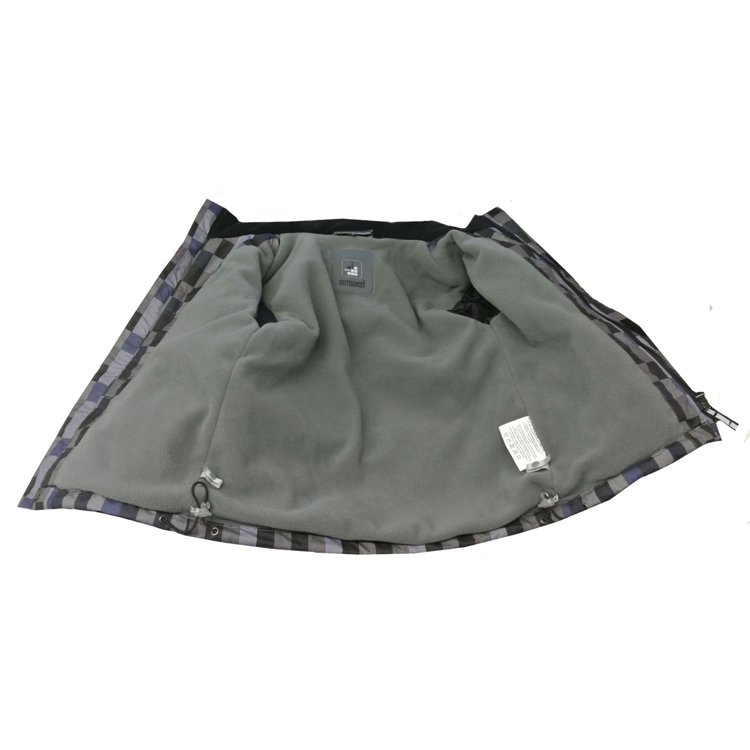 Schicke Jungenjacke von Outburst im angesagten Karodruck, beschichtet, verschweisste Nähte, Polyester-Fleecefutter, Umlegkragen mit Fleecebesatz, abreißbare Kapuze, Front-Reißverschluss mit Kinnschutz durch Klettverschlußleiste verdeckt, 2 RV-Schubtaschen