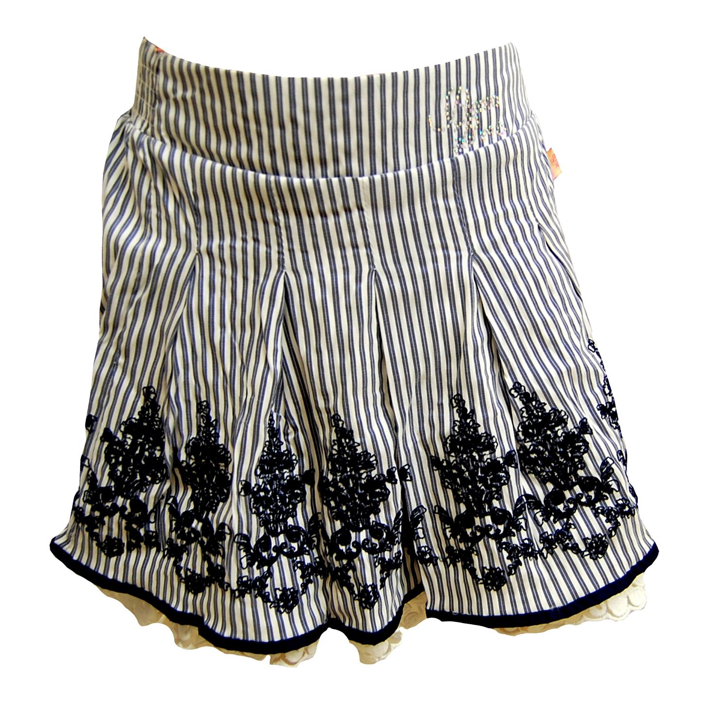 Schicker Rock für Mädchen für den Sommer von der Firma Pezzo 'Doro., mit Gummizug und Blumen-Applikationen. Vorn mit Glitzerschrift. Ideal auch für festliche Anlässe wie Schulanfang. Rock fällt etwas größer aus.
