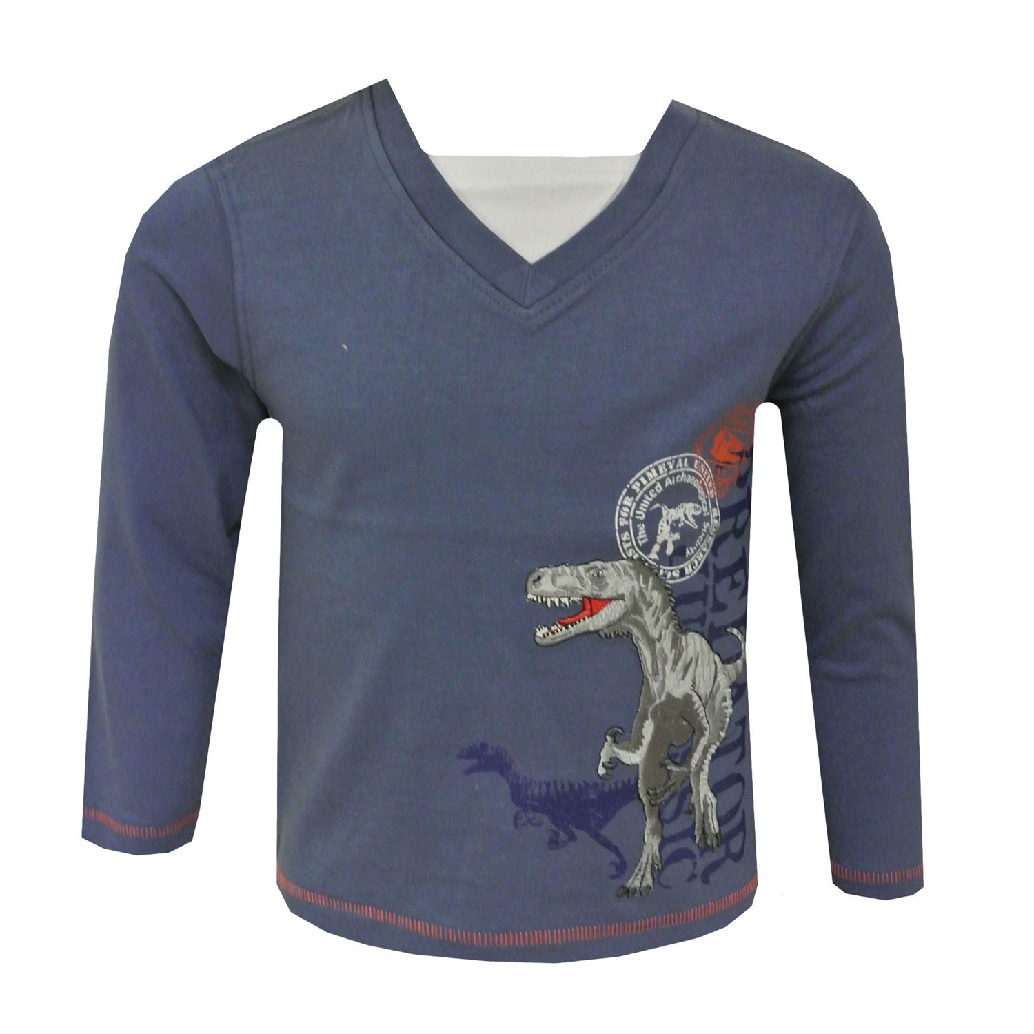 Jungen T-Shirt Langarm Dinosaurier, grau-blau