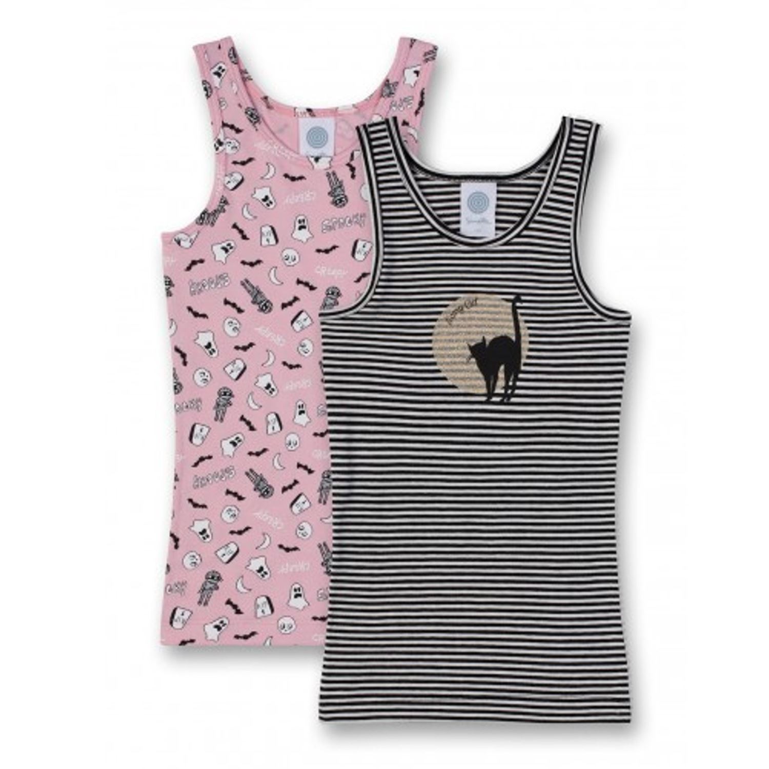 Mädchen 2er Set Unterhemd mit Halloween Motiv, rosa-schwarz - 334216