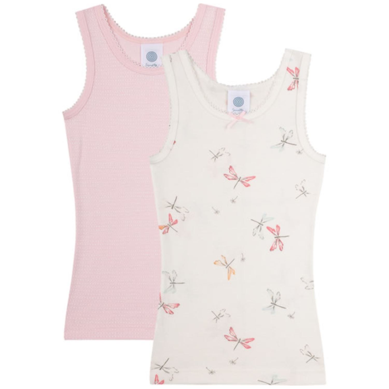 Schönes Unterhemden-Set in Single-Jersey Qualität von SANETTA für Mädchen. Das eine Unterhemd in rosa hat ein hübsches Pünktchen-Muster, das andere kommt in weiß mit glitzernden Libellen. Das weiche Material aus 100% Baumwolle sorgt für einen hohen Tragekomfort.