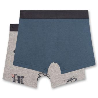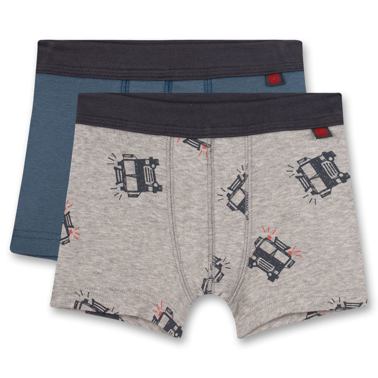 Hipshorts-Doppelpack von Sanetta in Graumelange mit Alloverprint "Auto" und Blau aus einem angenehmen Feinripp