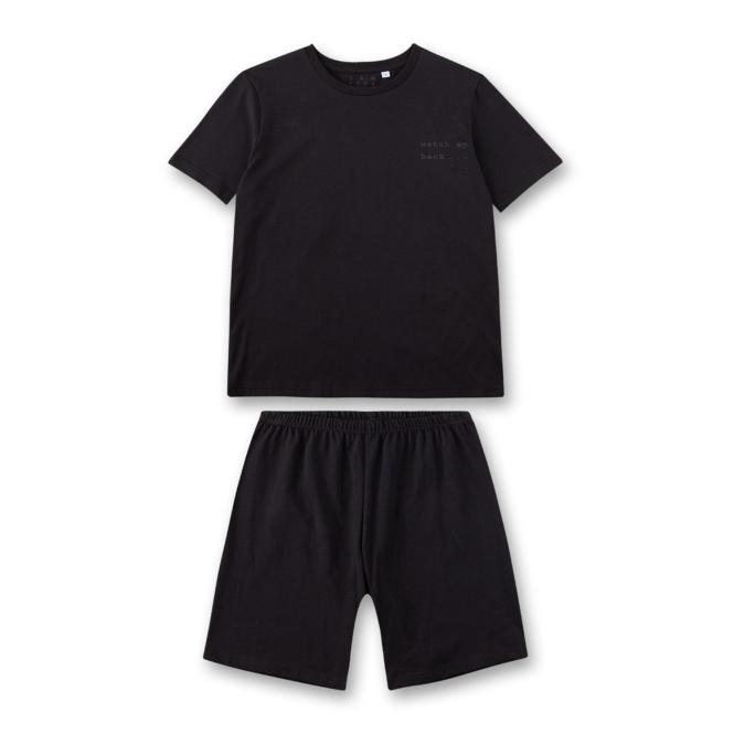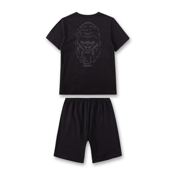 Kurzer Ton in Ton Schlafanzug von Sanetta für minimalistische Jungen mit einem Gorilla-Kopf auf dem Rücken.- hergestellt aus 100% Baumwolle in leichter Single-Jersey-Qualität für angenehme Sommernächte- Wording WATCH MY BACK auf der rechten Brust des Oberteils- auf dem Rücken des Oberteils befindet sich ein imposanter Gorilla-Kopf- Printlabel und softes Nackenband für einen noch besseren Tragekomfort- Schlafshorts mit elastischem Taillenbund für einen komfortablen Sitz Eigenschaften: Made in Europe OEKO-TEX® STANDARD 100 93.0.3465 Hohenstein HTTI trocknerbeständig