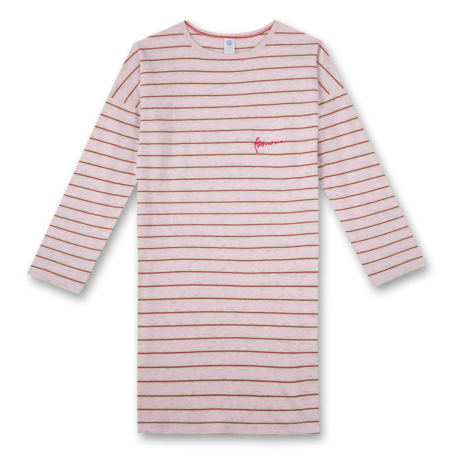 Bequem geschnittenes Mädchen-Nachthemd im roten Ringel-Design und dezentem FAMOUS Wording-Stick.- angenehm zu tragende Single-Jersey Qualität aus 100% GOTS zertifizierter Bio-Baumwolle- nachhaltig und fair hergestellt- leger geschnitten mit überschnittenen Schultern- dezent platziertes FAMOUS Wording- mit Rundhalsausschnitt- pflegeleicht und trocknerbeständig Eigenschaften: - GOTS ORGANIC CERES-0352 - Made in Europe - OEKO-TEX® STANDARD 100 93.0.3465 Hohenstein HTTI - Organic Cotton - trocknerbeständig