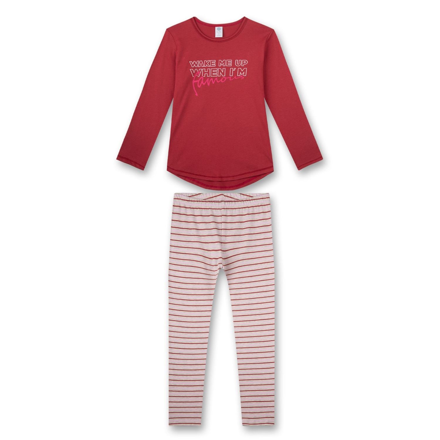 Lässiger Mädchen-Schlafanzug von Sanetta in Rot mit einem frechen WAKE ME UP WHEN I M FAMOUS und bequemer Leggings.- aus nachhaltiger GOTS zertifizierter Bio-Baumwolle in einer hochwertigen Single-Jersey Qualität- Langarmshirt mit Wordingprint und abgerundetem Saum für einen cool-lässigen Look- anschmiegsame Leggings mit elastischem Taillenbund im roten Ringel-Style- pflegeleicht und trocknerbeständigEigenschaften: - GOTS ORGANIC CERES-0352 - Made in Europe - OEKO-TEX® STANDARD 100 93.0.3465 Hohenstein HTTI - Organic Cotton - trocknerbeständig