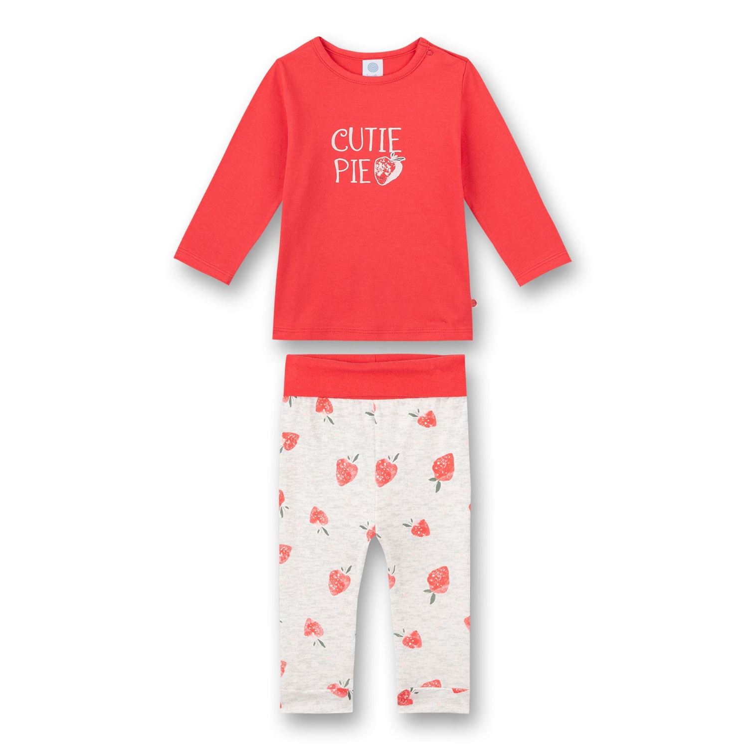 Sanetta Mädchen-Schlafanzug mit Schriftzug "Cutie Pie", Hose mit "Erdbeer"-Allover-Print aus 100 % Bio-Baumwolle, rot - 221621
