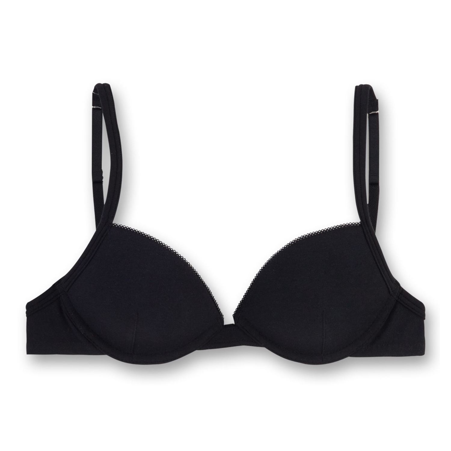 Dieser tolle Basic-Soft Cup Bra von Sanetta ist der perfekte Begleiter für alle Mädchen, die einen unkomplizierten Look bevorzugen. Das schlichte Design mit einer feinen Spitze an den Cuprändern macht aus dem BH ohne Bügel einen komfortablen Liebling im Kleiderschrank. Beste Elastik Single-Qualität sowie verstellbare Träger und ein dreifach verstellbarer 2er-Hakenverschluss am Rücken versprechen außerdem einen optimalen Sitz. Dank der hochwertigen Verarbeitung fühlt sich der BH in der Farbe Schwarz wie eine zweite Haut auf dem Körper an und bietet ebenfalls ein tolles Tragegefühl.