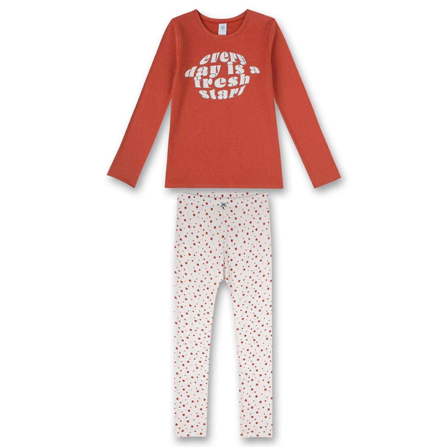 Langer Mädchen-Schlafanzug von Sanetta mit rotem Langarmshirt und bequemer Leggings im modischen Dots-Allover.