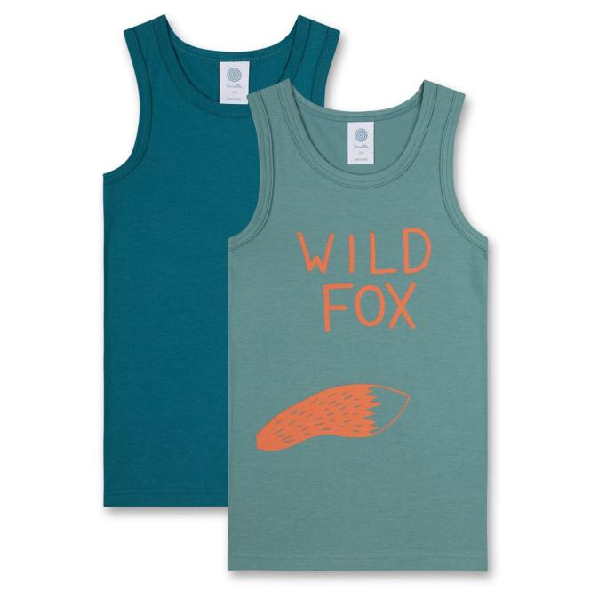 Freches Doppelpack bestehend aus zwei Jungen-Unterhemden von Sanetta mit Fuchs-Print und Wording WILD FOX.