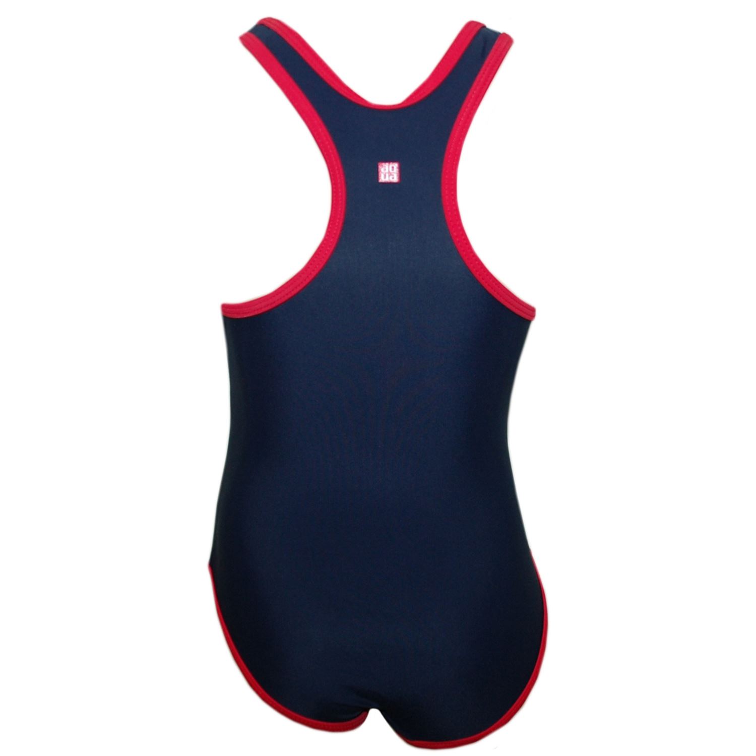 Schlichter Badeanzug von Schiesser mit Schriftzug und Print vorn. Die Träger sind schulterfrei.Dieser Badanzug schützt vor Hautreizungen und Rötungen bei Sonneneinwirkung und entspricht dem Sonnenschutzfaktor 50+. Nun kann die Badesaison beginnen.