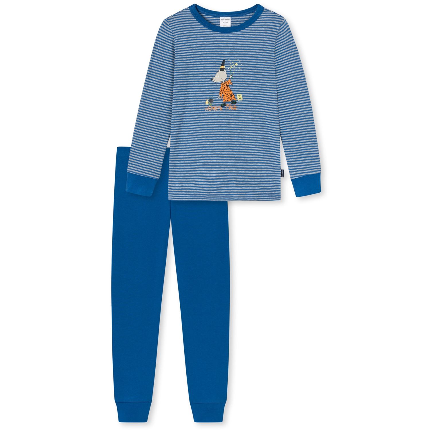 Jungen Schlafanzug geringeltes Langarmshirt und einfarbige Schlafhose "MAUS HEXE"-Druck und "Henry's Magic"-Schriftzug, blau - 175347