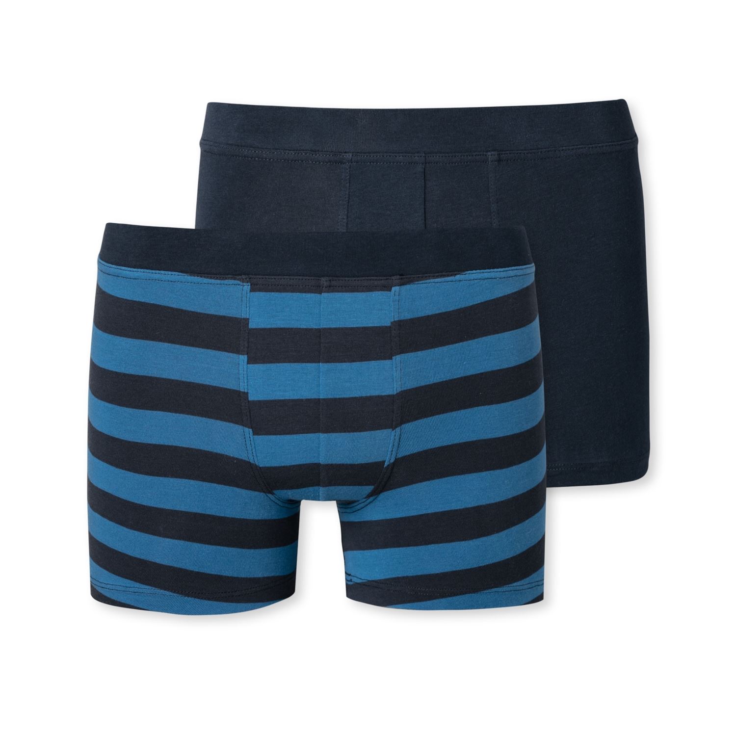 Bequeme Boxershorts für Jungen im Doppelpack von Schiesser. Das Set besteht aus einer dunkelblauen und einer blau-geringelten Unterhose aus weicher Baumwolle. Für einen perfekten Sitz sorgt der elastische Taillenbund.