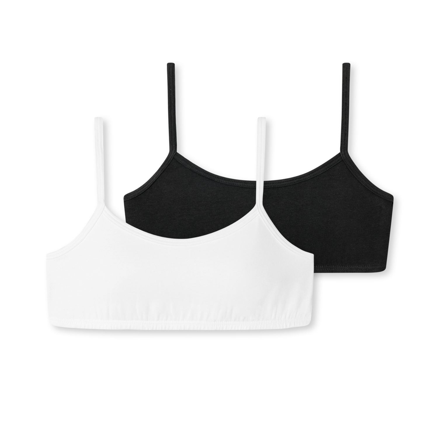 Bequemer Basic-Bustier für Mädchen von Schiesser im Doppelpack. Das Set besteht aus einem weißen und einem schwarzen Bustier. Die Bustiers haben feine Spaghetti-Träger und sind aus einem weichen, elastischen Baumwollstoff. Ein perfekter Tragekomfort ist garantiert.