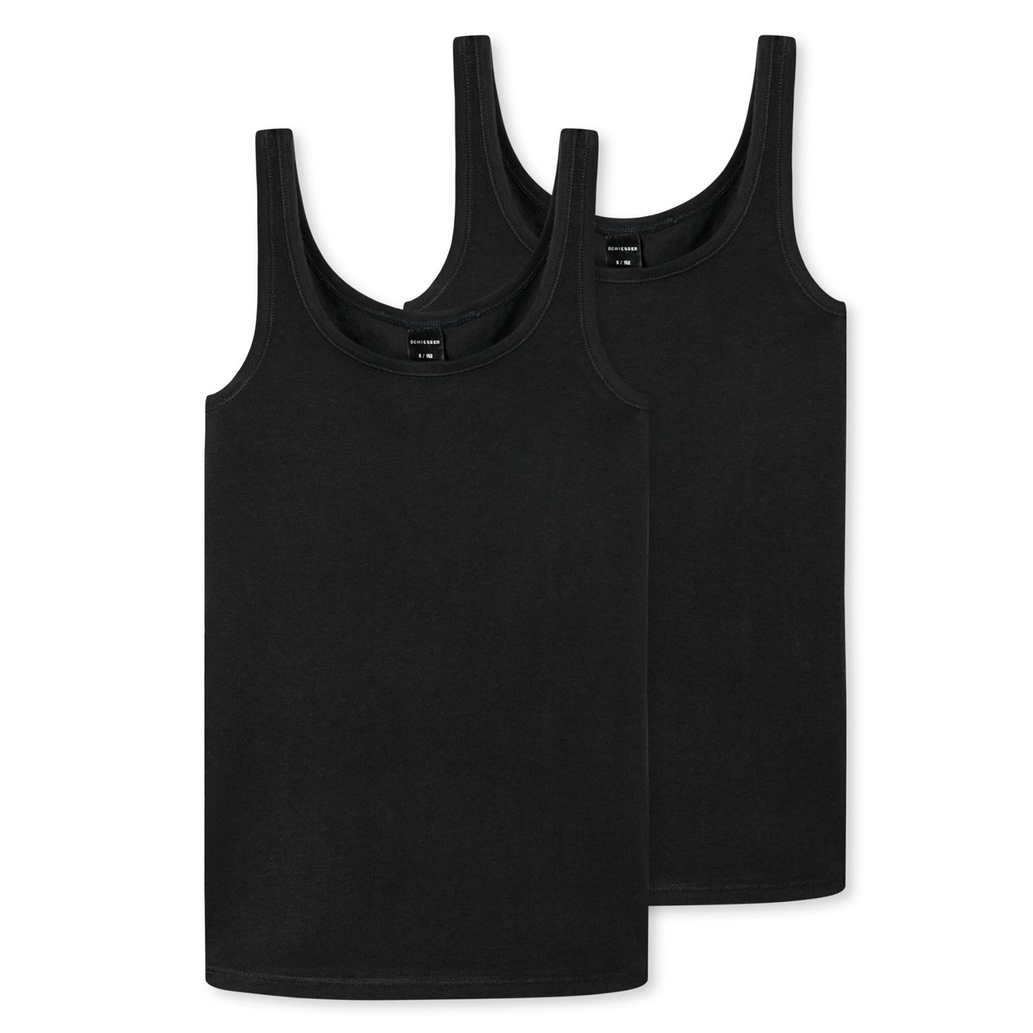 Super bequemes Basic-Unterhemd im Doppelpack von Schiesser. Die Unterhemden für Mädchen sind aus weichem, elastischem Baumwollstoff und schmiegen sich dem Körper wunderbar an. Arm- und Halsausschnitt sind eingefasst. Das Set besteht aus zwei schwarzen Unterhemden.