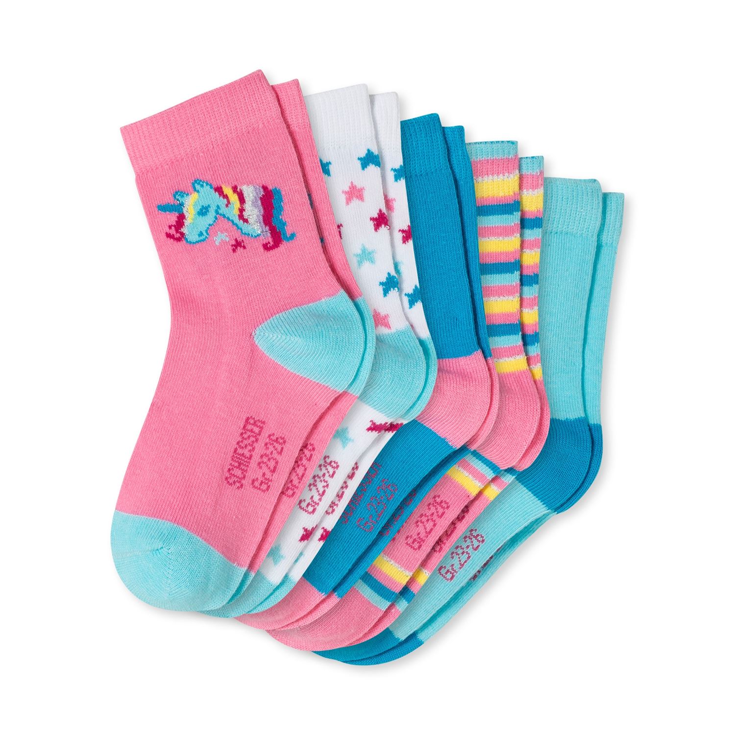 Lieblingssocken kann es gar nicht genug geben, vor allem, wenn sie so klasse aussehen und so gut sitzen wie diese 5 Paar Mädchensocken! In Rosa, Weiß oder Blau zeigen sich die Söckchen mal mit buntem Ringel-Muster, in Uni, mit Sternchen oder süßem Einhorn. Fröhliche Girls haben so jeden Tag die freie Wahl und werden dank der handgekettelten Naht auf Schritt und Tritt durch beste SCHIESSER-Qualität begleitet! Ein unschlagbarer Socken-Multipack!