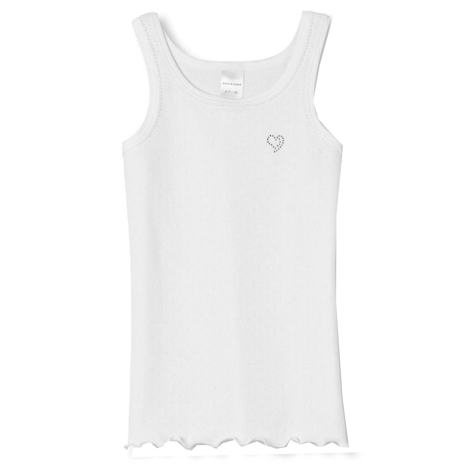 Tolles Unterhemd für Mädchen von der Firma Schiesser. Optisch überzeugt es mit einem tollen Herzdruck auf der Vorderseite. Die bewährte Feinrippqualität von Schiesser liegt angenehm auf der Haut.