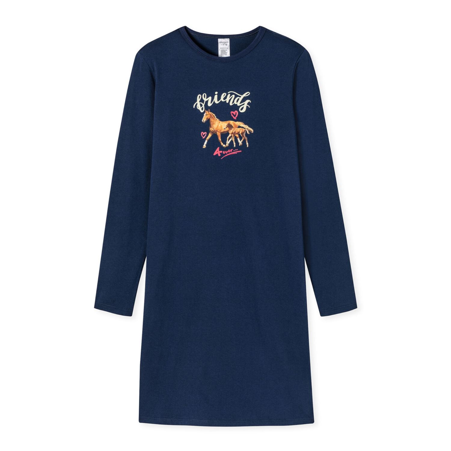 Schiesser Mädchen Nachthemd mit Frontprint "Pferd", lang, blau -...