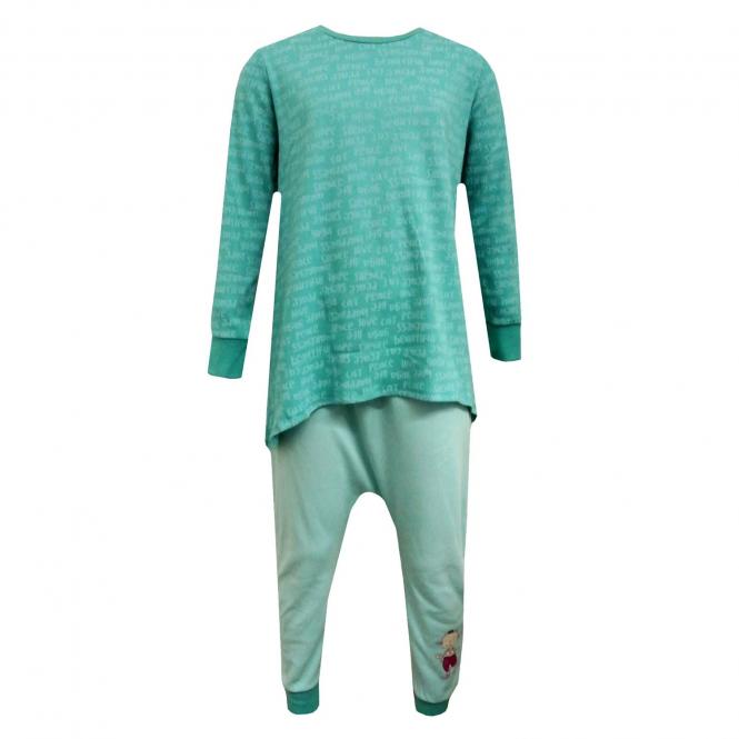 Schiesser Mädchen Zweiteiliger Schlafanzug Lang Text, türkis - 159259