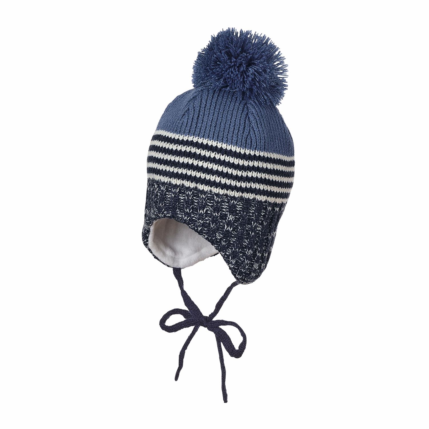 Baby Jungen Mütze Strickmütze zum binden mit Ohrenschutz und Bommel, gefüttert von Sterntaler, blau - 4701756