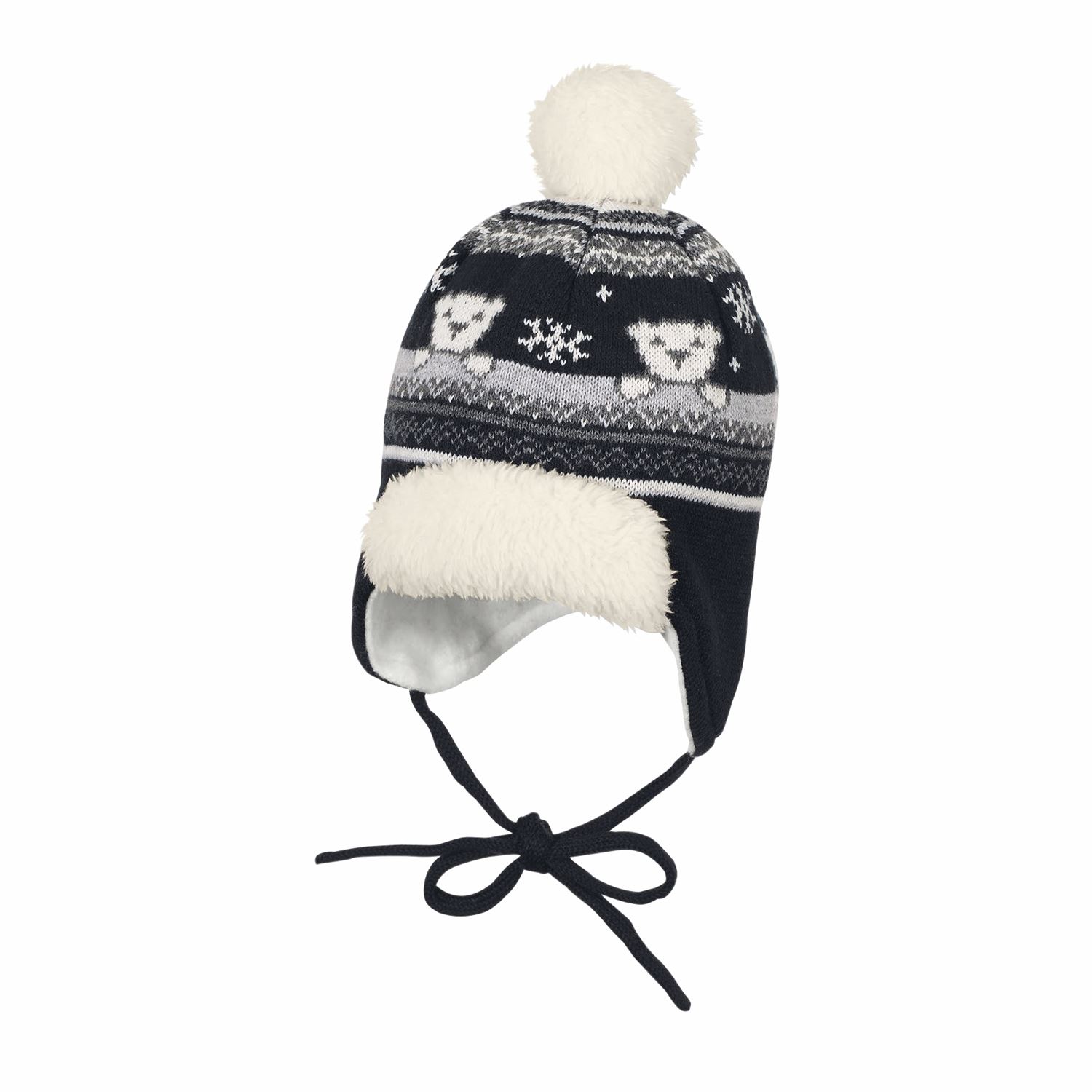 Baby Jungen Mütze Wintermütze Strickmütze gefüttert mit Bommel zum Binden "Wintermotiv mit Eisbären", marine - 4701830