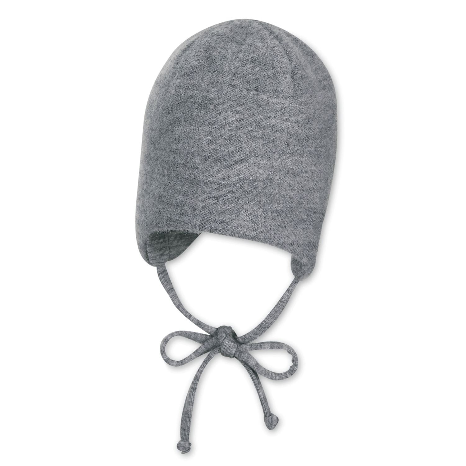Baby Jungen Mütze Wintermütze zum binden, Erstlingsgröße, 100% Wolle, gefüttert, einfarbig, grau - 4502122-silbe