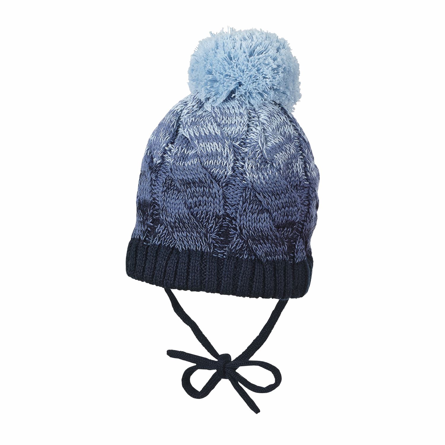Baby Jungen Strickmütze zum Binden gefüttert mit Bommel, gemustert, marine...