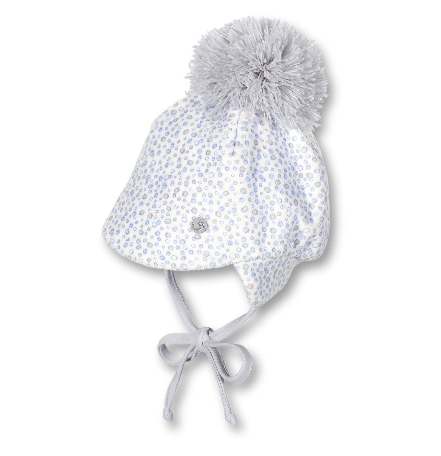 Baby Jungen Wintermütze Bommel, weiß-blau