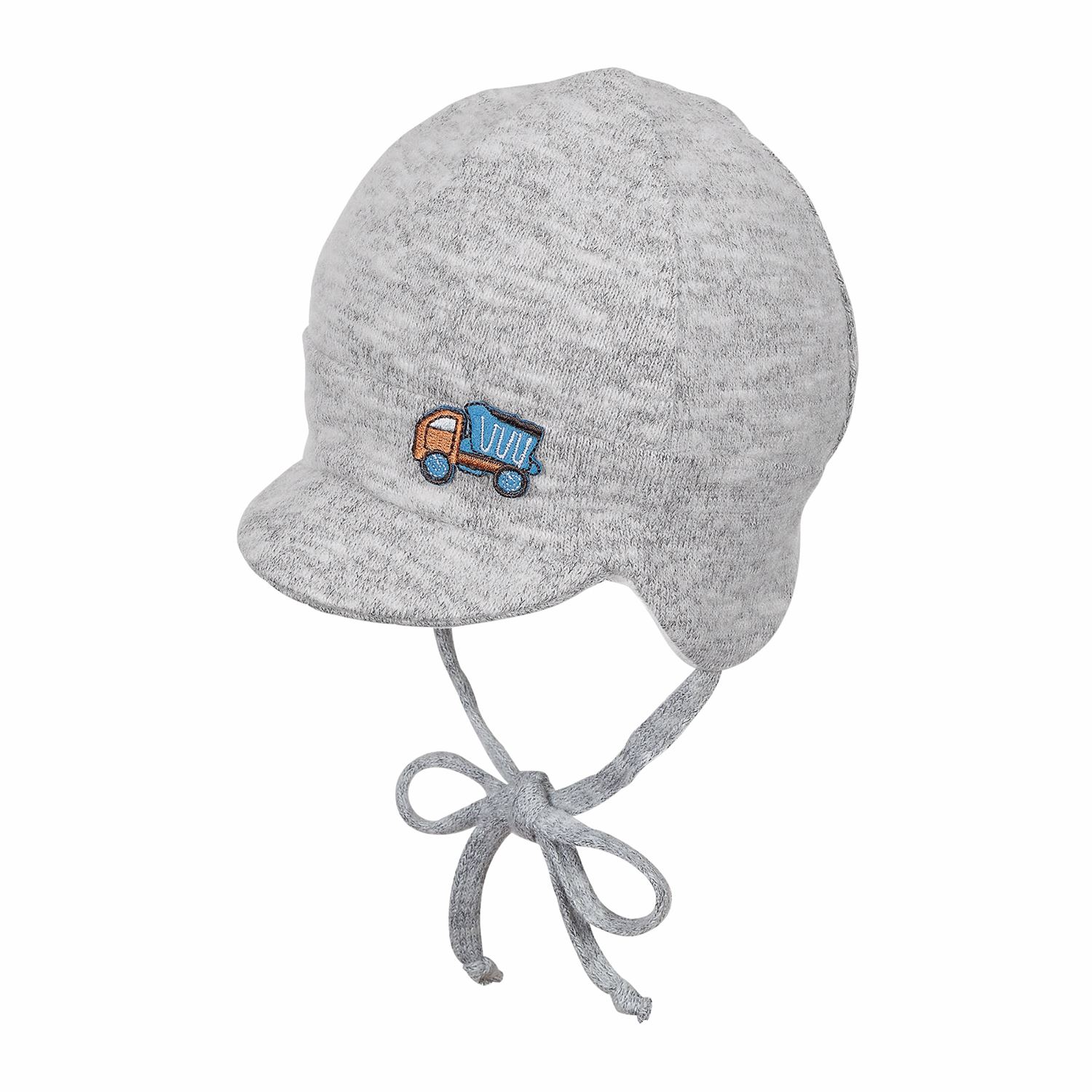 Baby Jungen Mütze Wendemütze gefüttert zum binden mit Ohrenschutz einfarbig meliert, himmel - 4501843