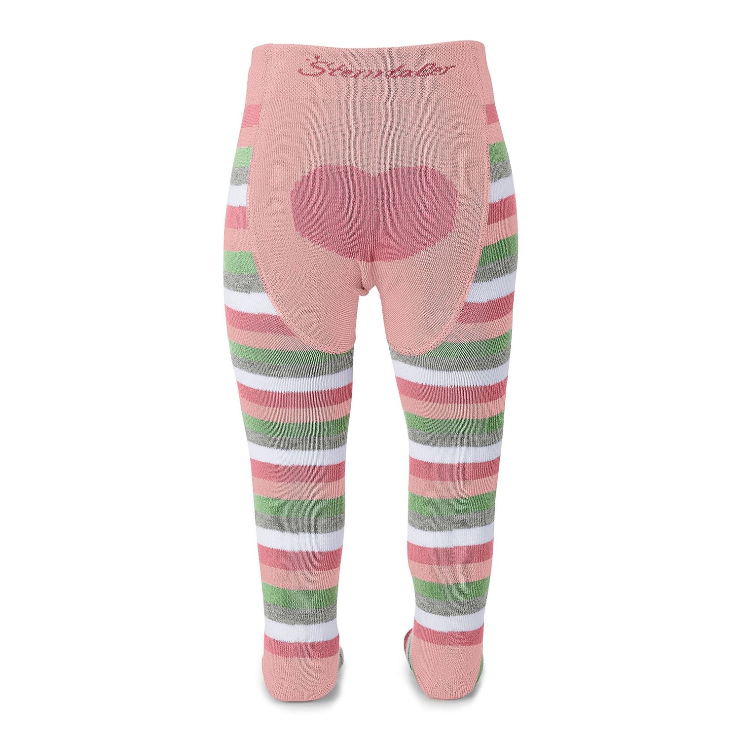 Hochwertige Strumpfhose für Baby Mädchen der Firma Sterntaler. Die Strumpfhose besitzt ein Po Motiv mit einem Herz sowie ein gestreiftes Design. Sie besteht aus 85% Baumwolle, 10% Polyamid und 5% Elasthan, was einen hohen Tragekomfort garantiert. Der elastische Komfortbund sowie die rutschsichere Gummierung auf Sohle, Spann und Knie sorgen für optimalen Halt und zusätzliche Sicherheit.