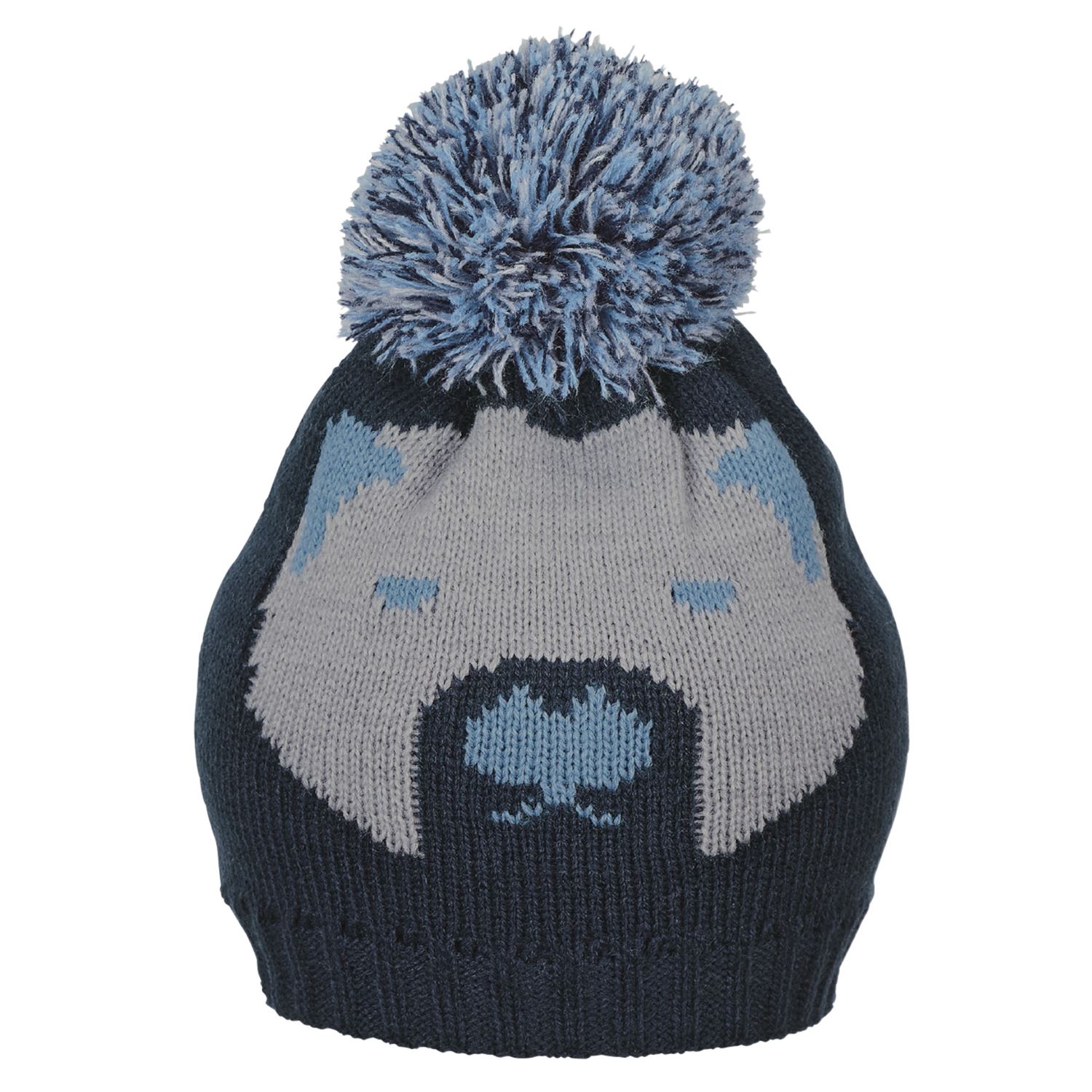 Liebevoll gestaltete Bommelmütze von Sterntaler mit Bärendesign und weichem Baumwollfleece-Futter für warme Ohren.
