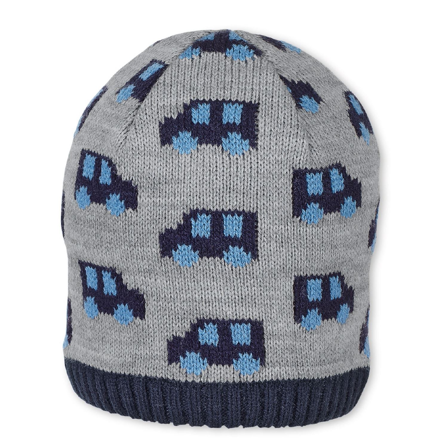 Liebevoll gestaltete Wintermütze von Sterntaler in süßem Strickdesign mit Autos und weichem Baumwollfleece-Futter für warme Ohren.