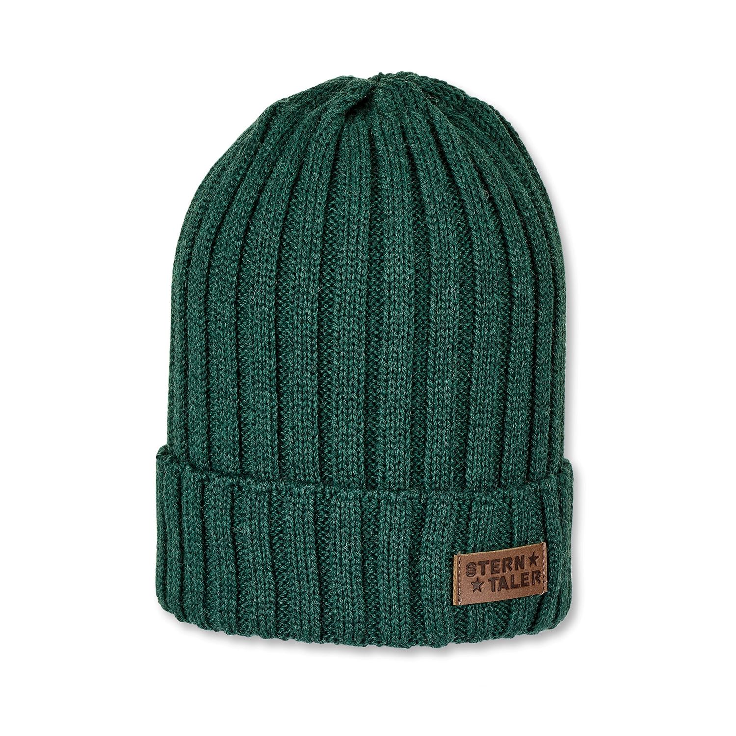 Tolle Strickmütze in dunkelgrün von Sterntaler mit praktischen Umschlag und Logobadge. Perfekt für die Übergangszeit und kalte Tage.